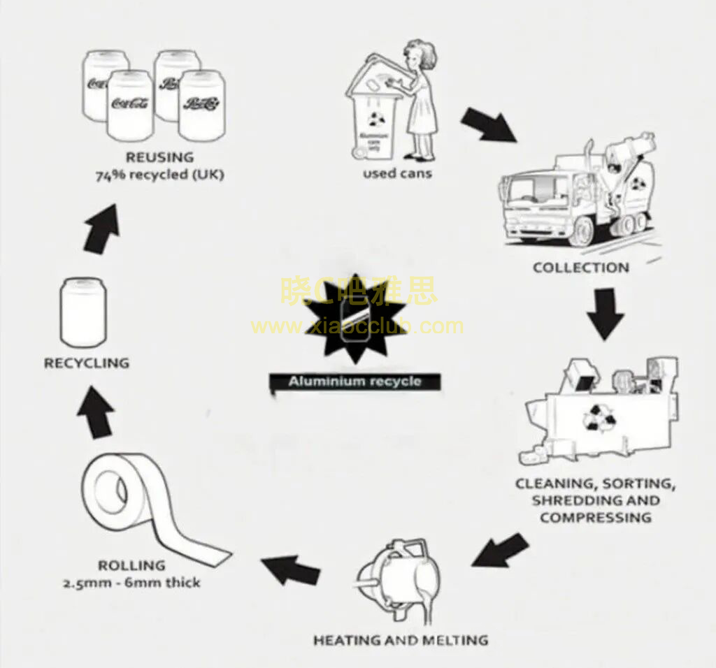 The diagram below shows the recycling process of aluminum cans.