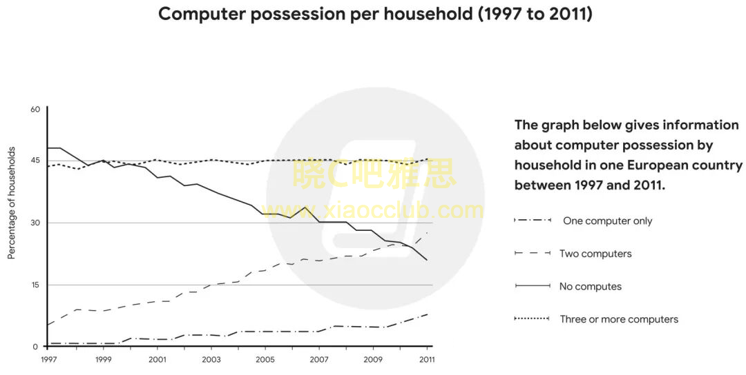 The graph below gives information about computer possession by household in one European country between 1997 and 2011.